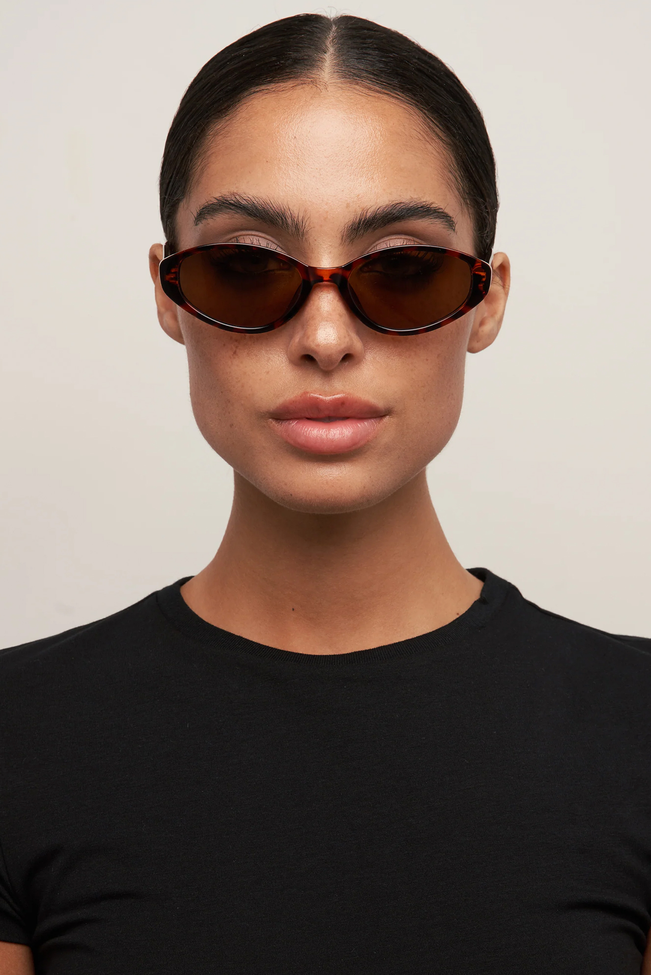 Черепаховые солнцезащитные очки «cat eye» с теплыми коричневыми линзами.